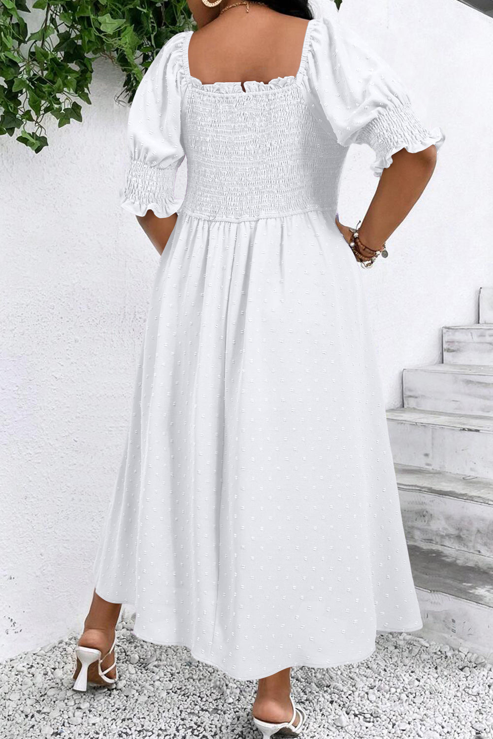 Wisteria Swiss Dot Smocked Frilled Neckline Short Sleeve Plus Size Dress